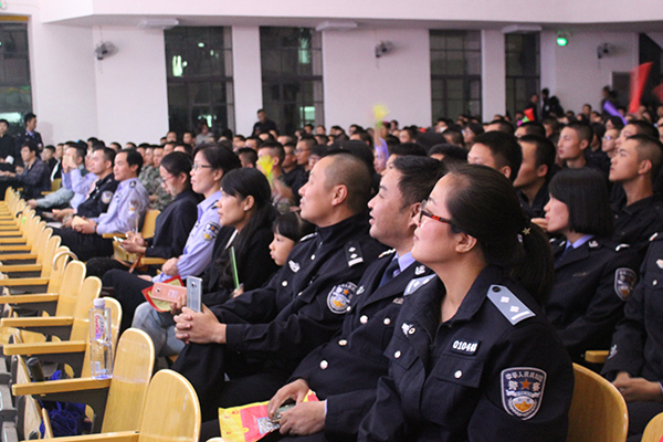 为欢迎15级新生, 11月25日晚,刑技系与计算机系携手举办主题为“绽放青春,放飞梦想”的迎新晚会。刑技系和计算机系党总支副书记林艳平、汪宏伟老师以及林鼎、李杨春等大队老师观看了晚会。