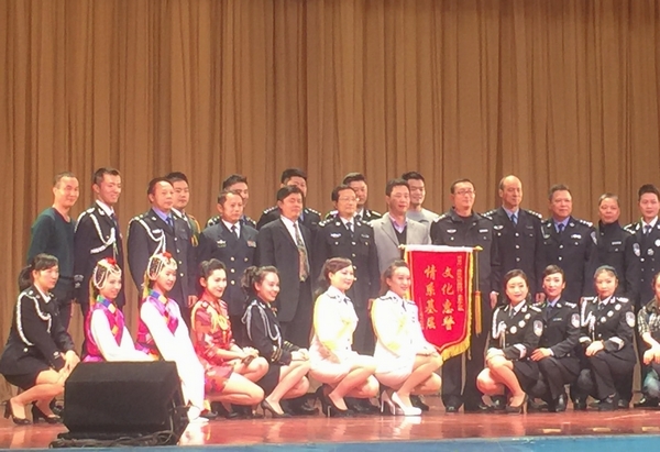 12月7日晚,刘瑞榕院长在学工处徐开旺副处长、胡向东科长及治安系陈桂清大队长的陪同下,带领治安一大队127名青运安保在演出中,省公安厅2015年“公安文化基层行”文艺小分队通过精彩的文艺表演,回顾了奋战在首届全国青运会安保一线的民警和志愿者的艰辛工作历程,展现了他们忠于党、忠于祖国,坚决完成使命任务的崇高精神和不怕苦、不怕累,一心为人民服务的感人形象,引起了在场观众的共鸣。