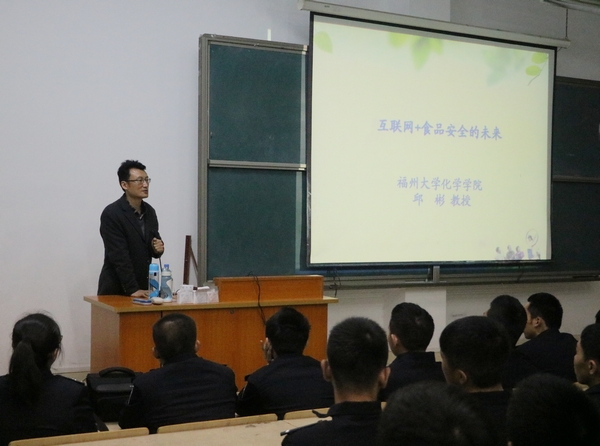 12月7日晚,刑技系邀请福州大学化学学院邱彬教授作食品安全专题讲座。邱教授阐述了食品安全现状和相关法律法规,剖析了互联网发展与未来食品安全的联系,解答了同学们的疑问。讲座提高了同学们的安全卫生意识,丰富了食品安全知识。