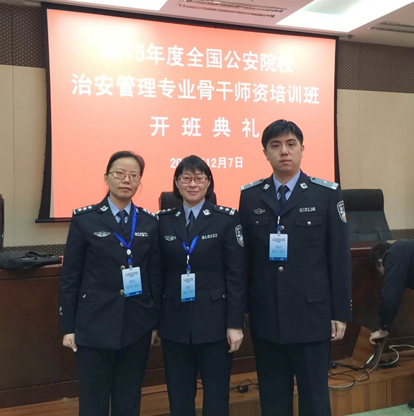 12月7日,治安系胡雪、胡玉娟、刘韵三位教师参加了在上海公安高等专科学校举办的2015年全国公安院校治安管理专业骨干师资培训班。本期培训班邀请了公安部人事训练局陈延超副巡视员、公安部治安管理局马维亚副局长、新加坡警察部队国际合作局李志超副局长、中国警察协会学术委员王太元教授、上海市公安局治安管理总队戴民总队长、新加坡南洋理工大学公共管理研究生院院长吴伟教授、江苏警官学院薛宏伟副院长、浙江警察学院宫毅副院长、华东政法大学法学院院长刘宪权教授以及BITAC英国在华国际培训师协会王鸥飏主席等中外专家学者,开展关于招录培养体制改革、社会治安管理与防控以及公安高等教育和人才培养等专题培训。