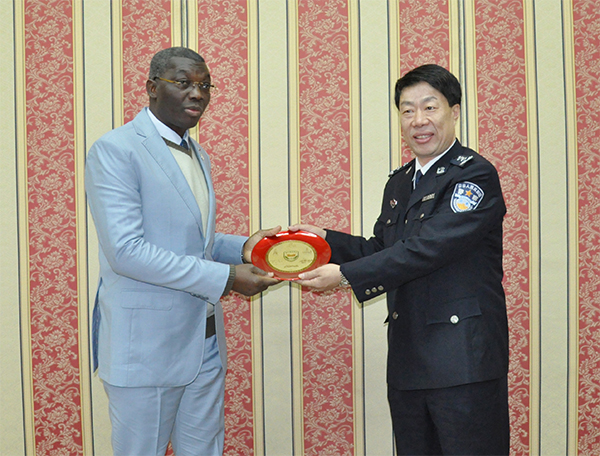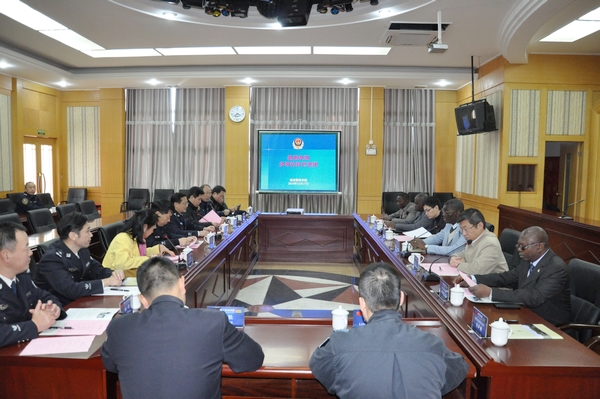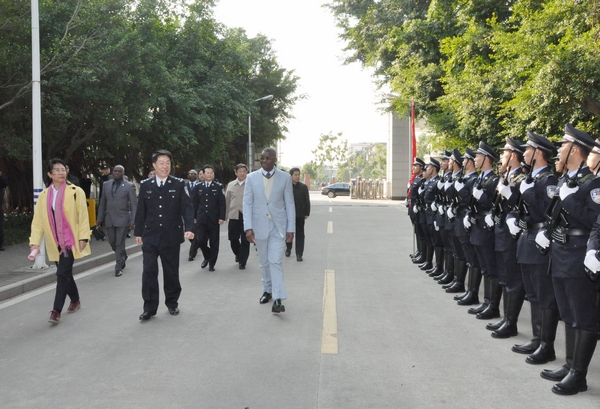 12月17日,多哥共和国安全与公民保护部长雅克·达梅哈内在公安部国际合作局陈栋副局长的陪同下率团到beat365访问交流。学院党委书记游晔、院长刘瑞榕会见了雅克·达梅哈内部长一行。访问团首先参观了学院图书馆、模拟法庭等教学训练场馆,观摩了学生盾牌与警棍、散打格斗、防卫控制技术等训练课程,随后与学院领导及相关部门负责人进行了座谈。
