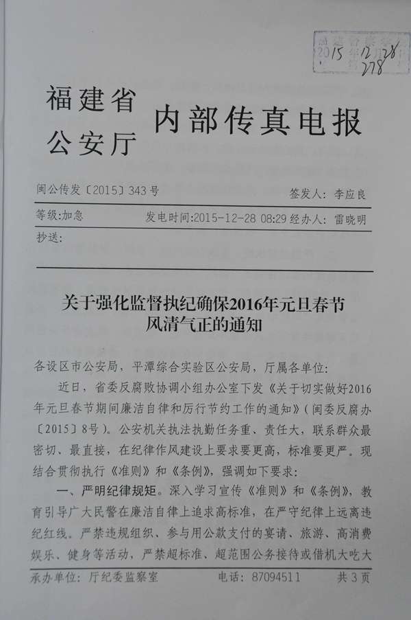 关于强化监督执纪确保2016年元旦春节风清气正的通知