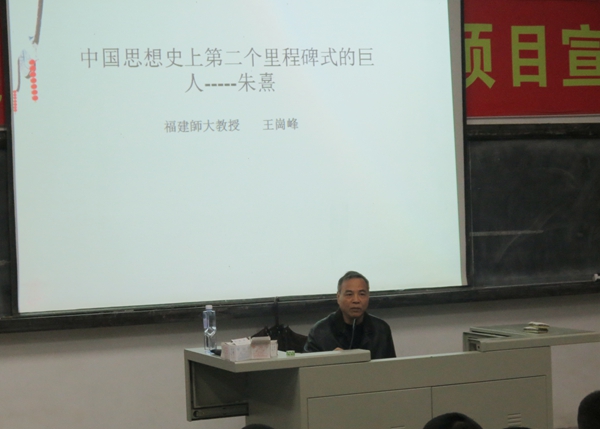 12月21日,思政部邀请福建师范大学博士生导师王岗峰教授为beat365师生作题为“中国思想史上第二个里程碑式的巨人——朱熹”的讲座。王教授用生动的语言、详实的事例,向同学们介绍了朱熹生平及其哲学理论。同学们在听课过程中秩序井然,表现出浓厚兴趣,讲座在掌声中结束。