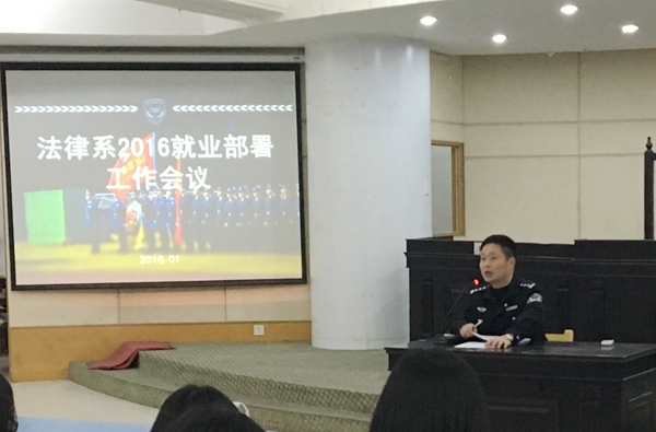1月13日下午,法律系召开2016届毕业生座谈会。座谈会设置两项议程,在第一项议程“中层领导干部挂钩区队”中,徐开旺副处长作诚信考试教育讲座,讲授了工作中的伦理道德;在第二项议程“法律系2016就业工作”中,吴宜焕大队长作实习和就业相关事项安排,教导学生树立“先就业再择业”的观念。