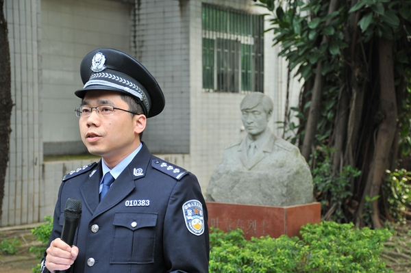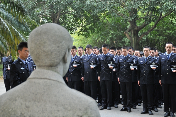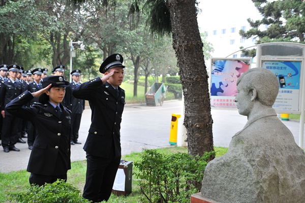 清明节期间,侦查系与法律系师生在叶寿春烈士雕像前进行祭扫缅怀活动。师生仔细擦拭雕像,为烈士献上鲜花并默哀敬礼,表达了继承先烈遗志,弘扬奉献精神,铸就忠诚警魂的坚定信念。