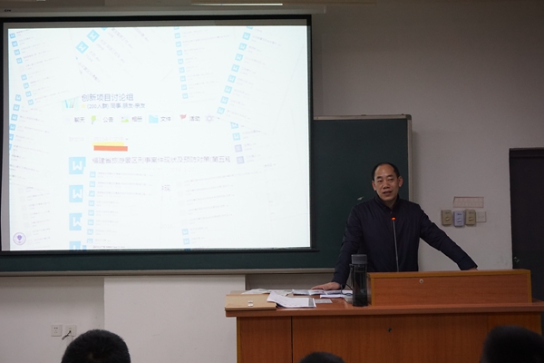 4月10日晚,侦查系开展大学生创新创业项目申报多彩课堂活动。《福建省旅游景区犯罪现状与犯罪预防》项目组长陈莉鑫同学介绍了课题进展情况,与同学们分享了项目建设中的注意事项和工作经验。该项目指导老师、侦查系党总支副书记黄华水作出点评,并解答了同学们的疑问,师生现场互动频频,气氛活跃。活动加深了同学们对“大创”项目的了解,调动了参与的积极性。