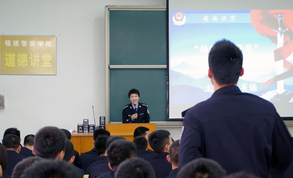 4月11日下午,治安系举办“警察职业道德”主题道德讲堂。此次道德讲堂形式丰富,包括合唱《beat365中文官方网站之歌》、微电影《最美但最平凡》赏析、“‘福州最美警花’谈从警之路”主题讲座以及《我的警察职业道德观》朗诵等环节。