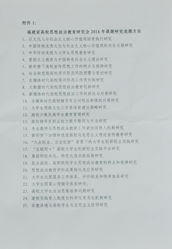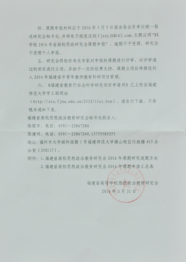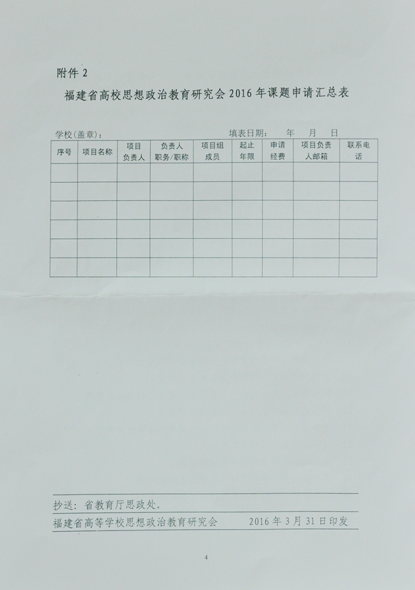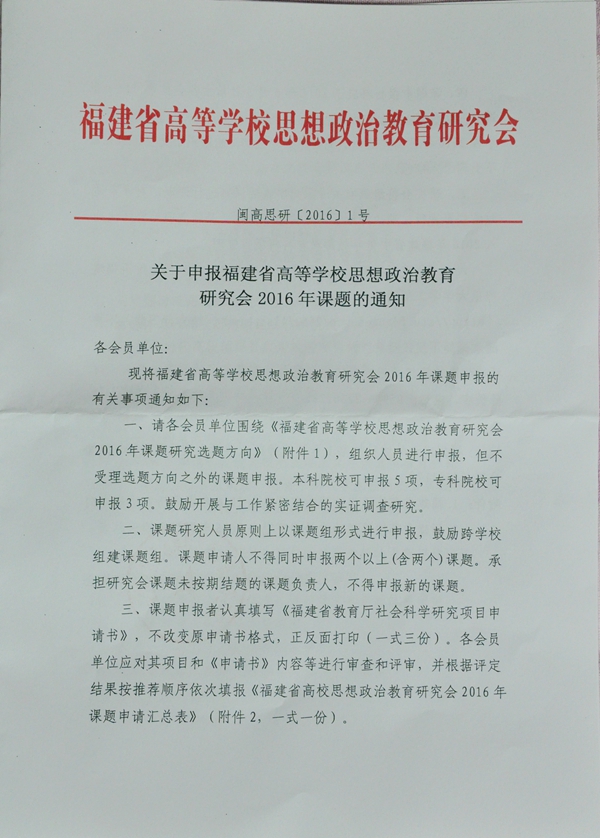 关于申报福建省高等学校思想政治教育研究会2016年课题的通知