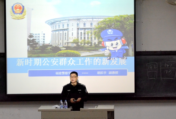 为提高学生工作能力,加强群众意识和服务意识,4月26日晚,公管系副主任胡滨亭为本系师生作“新时期公安群众工作的新发展”讲座。胡副主任从认识误区、面临困难、工作实践、工作技巧四个方面入手,结合调研的经历感受,对公安机关群众工作新的发展方向作出生动阐述。