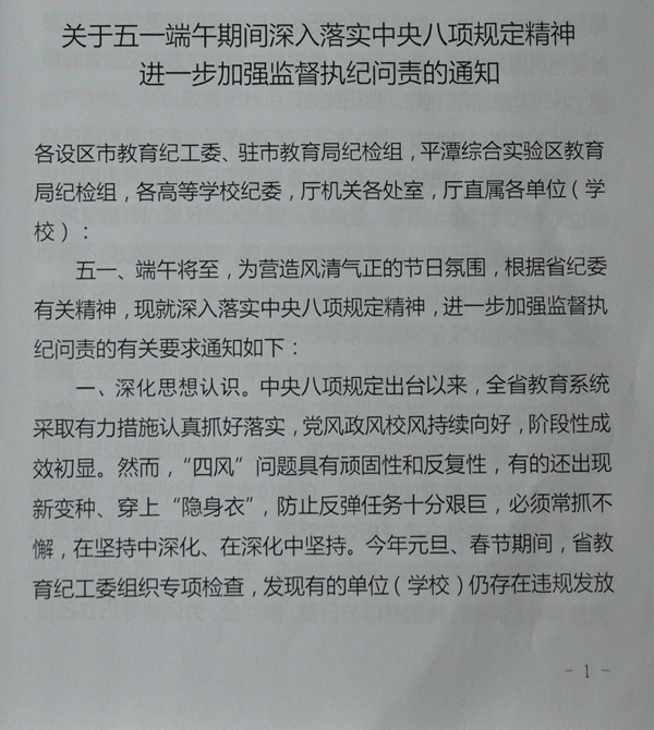 关于五一端午期间深入落实中央八项规定精神进一步加强监督执纪的通知