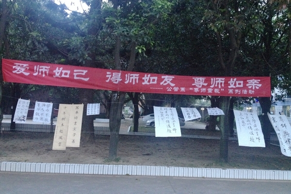 为营造良好氛围,弘扬尊师重教传统文化,5月9日,公管系举办“尊师重教”主题书法比赛。比赛邀请三位学院书法协会成员担任评委,评选出一、二、三等奖作品,并进行公开展示,丰富了同学们的校园文化生活,增强了尊师重教的意识。