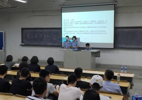 为了提高学生的思维能力和参加集体活动的积极意识,5月14日,公安管理系举办“一站到底”文娱活动。活动面向全院学生,采用竞赛问答和游戏相结合的形式进行比赛。经过精彩的较量,法律一大队的张翼航同学获得了冠军。同学们在活动中享受乐趣、尽显风采,增强了团队意识。