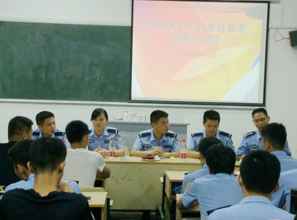5月30日晚,公管二大队举行毕业实习与招警考试备考经验交流会,会议由林廉锐大队长主持。4名成绩优异的毕业生与大家分享了心得。同学们各抒己见,展开热烈讨论,为即将到来的毕业实习与招警考试做好准备。