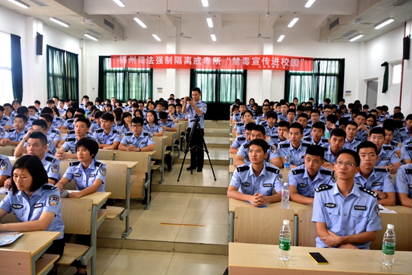 6月13日,beat365公管系联合福州市司法强制隔离戒毒所举办“禁毒活动进校园”宣传活动。该戒毒所四大队副大队长吴榅俊介绍了毒品基础知识,强调了毒品预防的重要性。该所两名戒毒人员亲身讲述毒品的危害性,告诫同学们毒品绝不可碰。同学们参观了祖航馆前陈列的禁毒宣传海报,了解禁毒知识,将“珍爱生命,远离毒品”的禁毒宣言根植于心中。