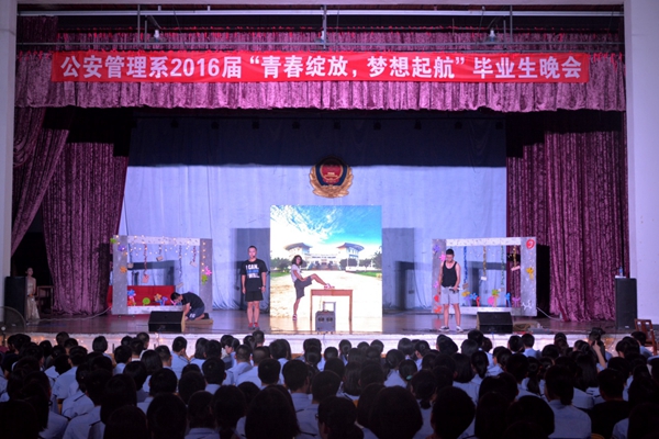 6月21日晚,公管系举办 “青春绽放,梦想起航” 2016届毕业生晚会。晚会在舞蹈“士兵突击”中拉开序幕,公管系副主任胡滨亭与同学们合唱了歌曲“平凡之路”,张苏老师演唱了歌曲“珠穆朗玛”,刑技系李华老师与“侦查五楼”乐队共同演唱了歌曲“明天你是否依然爱我”、“我的未来不是梦”,动听的旋律将晚会推向高潮,晚会在歌曲串烧中落下帷幕。晚会营造温馨的毕业氛围,在毕业生离开校园、走向工作岗位前送上了美好祝福。