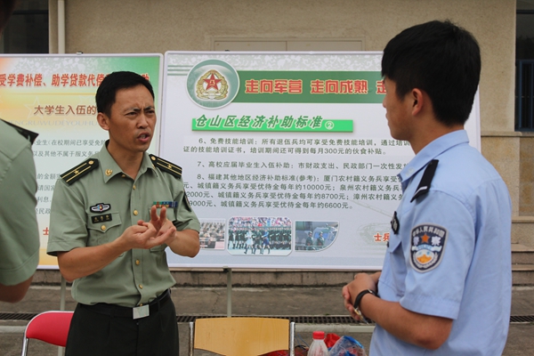 6月21日晚,仓山区武装部政工科科长张德峰来beat365为全体毕业生作征兵政策宣讲。张科长对今年国家征兵的基本程序、时间安排以及对高校征兵的优惠政策进行了解读,并向同学们发出召唤,希望广大有志大学生积极投身国防事业,建功立业,报效祖国。