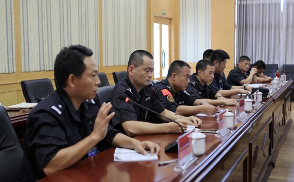 刘院长向论处长一行介绍了学院和基地的建设尤其是硬件设施不断改善的情况,并表示学院将一如既往地对公安部基地的运作和发展给予大力支持。论处长就公安部开展警务实战训练活动的重要意义、基本方向、具体要求、有效举措以及下一步的工作部署做了说明。他对福建基地所取得的成绩表示充分肯定,希望福建基地进一步发挥自身特色和优势,辐射全国,带动其它基地专业水平的提升。参会学员代表就参加指挥训练的感受、基层民警培训需求、工学矛盾、市县两级培训职能、专职教官队伍建设等问题向与会领导作了汇报发言。张处长结合图文视频资料,系统汇报了福建基地成立以来在办班施训、教学创新、课程研发、教材编制、外警培训等方面的工作情况,并就警务实战指挥专业的课程与教材体系建设工作向与会领导作了汇报交流。
