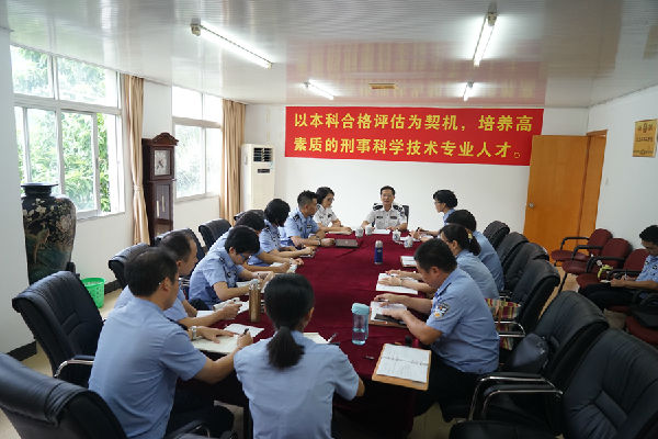 林艳平主任就刑技系的机构设置、教学科研、学生管理等情况作了汇报。胡宝珍副院长肯定了刑技系近年来在课程体系建设、科研创新与成果转化、民警在职培训等方面取得的成绩,希望全体教师共同努力把教学工作做的更好,为顺利完成本科教学合格评估工作做出贡献。