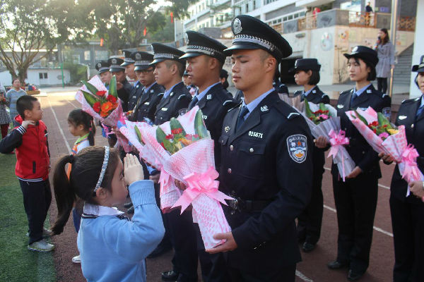 11月8至11日,公管一大队学生教官受邀前往仓山小学,为该小学三年级学生指导队列训练。