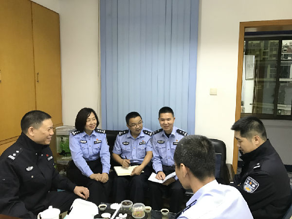 为了更好完成模似实训课程教学任务,实现业务知识与警务实践相结合,11月21日,治安系治安管理教研室教师张旭红、陈玉友、林聿峰一行到福州市对湖派出所接洽学生实训工作。张旭红教授一行与对湖派出所所长李姜峰等业务骨干,就强化治安学专业学生对社区安全防范、场所治安管理等相关警务技能进行了深入探讨,对学生实训环节作了具体安排。交流为进一步建立有效的校所合作、联合育人的机制,构建“研、教、学、练、战、思”应用型警务人才培养模式开拓了思路。