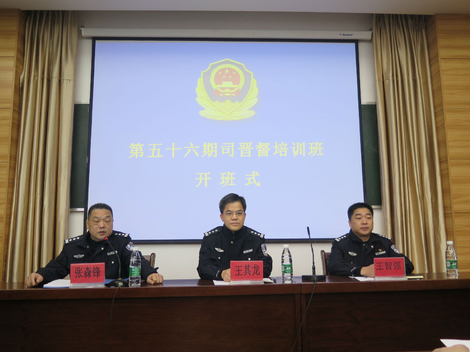 王其龙处长指出,根据《人民警察法》、《公安机关人民警察训练条令》的规定举办此次司晋督警衔晋升培训班,主要目的是通过开展训练,使参训民警更新观念、拓展知识、提高工作能力。他要求培训班加强管理,要求全体学员珍惜学习机会,学会学习、学会思考、学会分享、学会反思、学会自我调适;要自觉遵守中央“八项规定”和公安机关纪律条令,遵守培训纪律及“一日生活制度”,争当优秀学员。