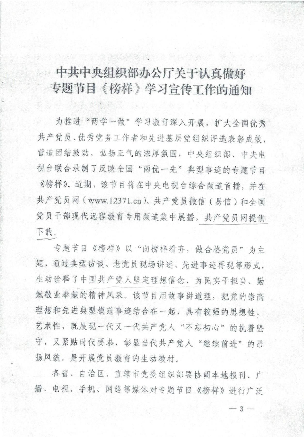 中共中央组织部办公厅关于认真做好专题节目《榜样》学习宣传工作的通知