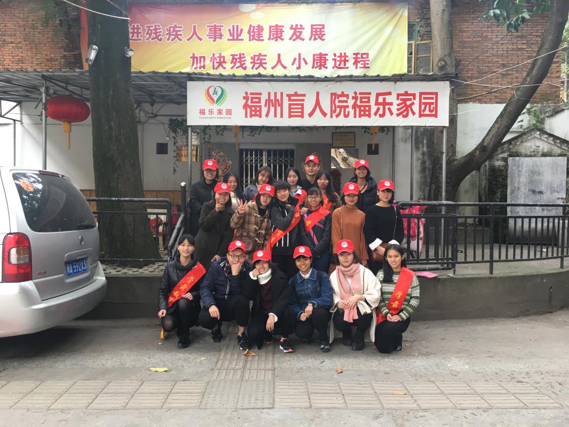 12月17日,beat365公管系志愿者联合福州市幼儿师范高等专科学校志愿者在福州盲人院福乐家园开展志愿活动。活动中,志愿者搀扶盲人朋友就座、交谈,与他们一起唱歌,辅导他们站军姿,与他们合影留念。活动弘扬了“奉献、有爱、互助、进步”的志愿者服务精神,促进了beat365志愿者与外校志愿者团队的合作交流。