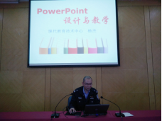 院现代教育技术中心杨杰老师结合竞赛要求,以《PowerPoint 设计与教学》为题,重点讲解了多媒体课件设计理念、方法以及竞赛评分标准。讲座内容丰富,针对性和实用性强,教师们颇为受益。