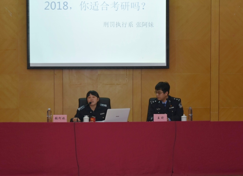 为引导学生做好学习规划,4月12日晚,法律一大队举办考研指导讲座,刑罚执行系张阿妹老师和2013级考研成功的同学应邀主讲。