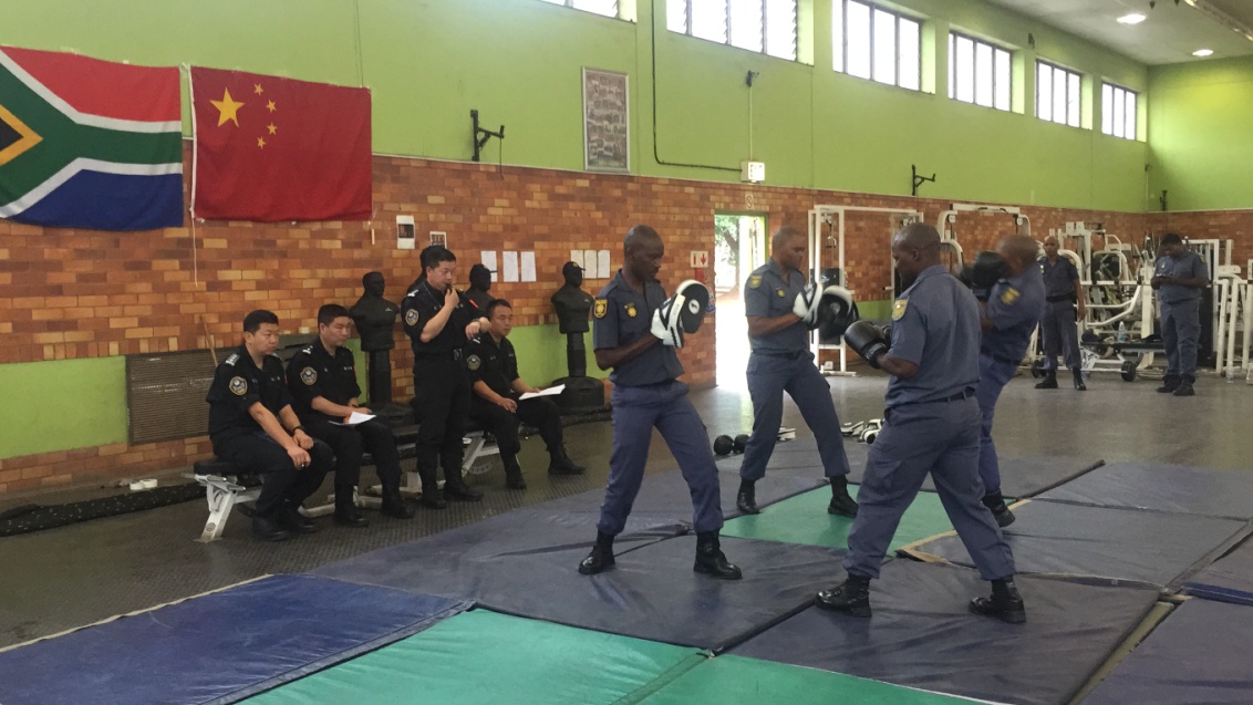 当地时间2017年4月14日上午,第二批应邀赴南非援外执教中国警察教官团在比勒陀利亚警察训练基地对“2017年南非警察武力使用培训班”全体参训学员进行结业考核。