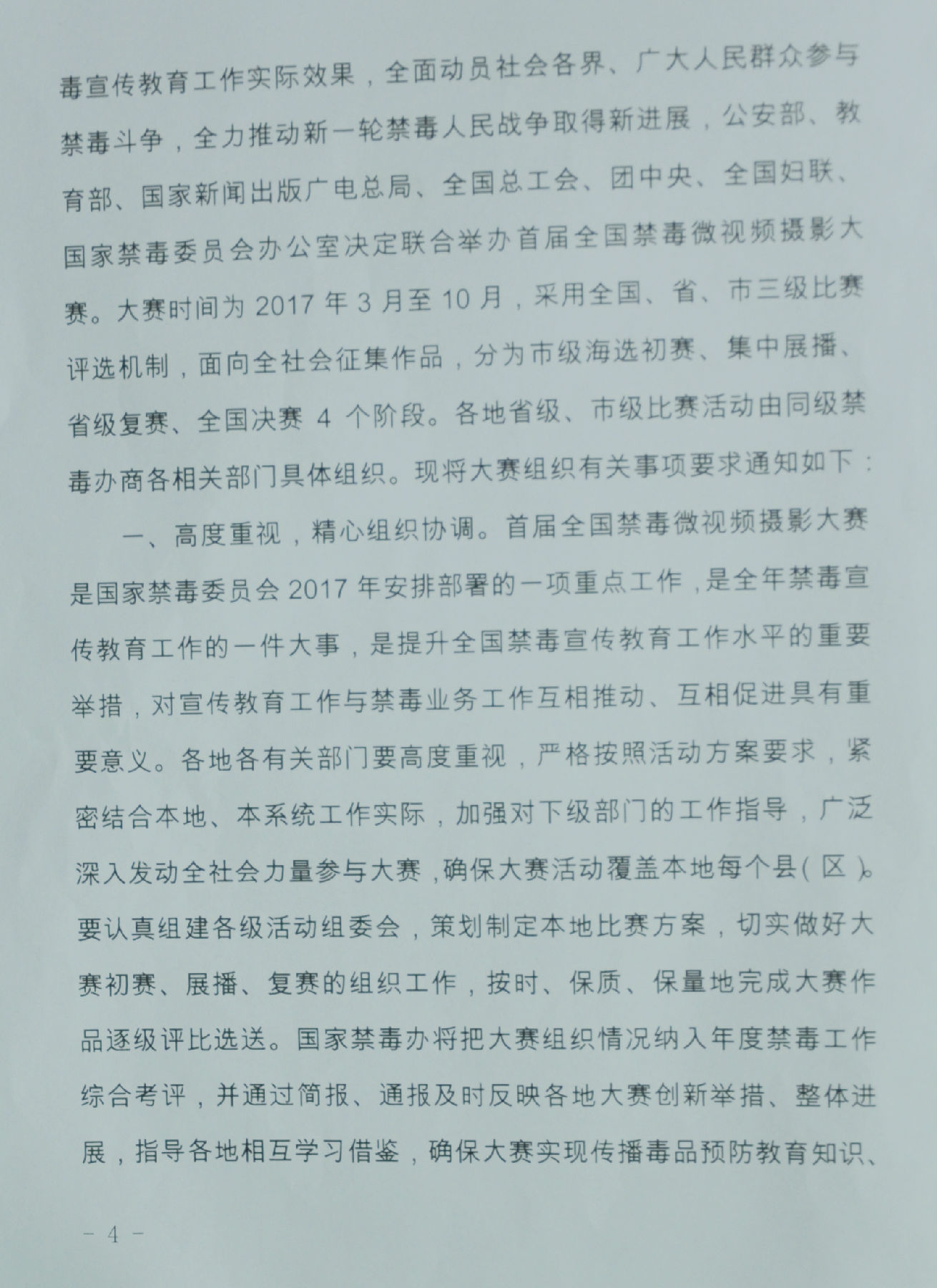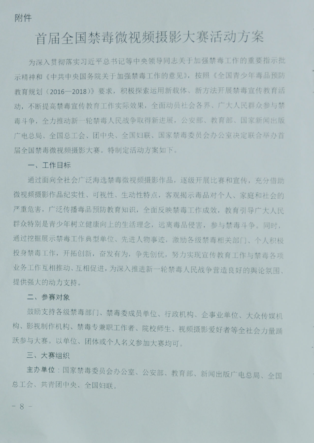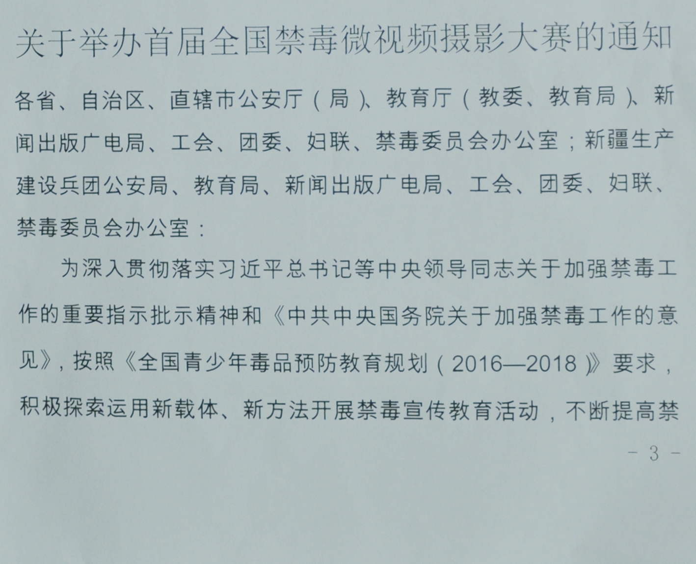 关于举办首届全国禁毒微视频摄影大赛的通知
