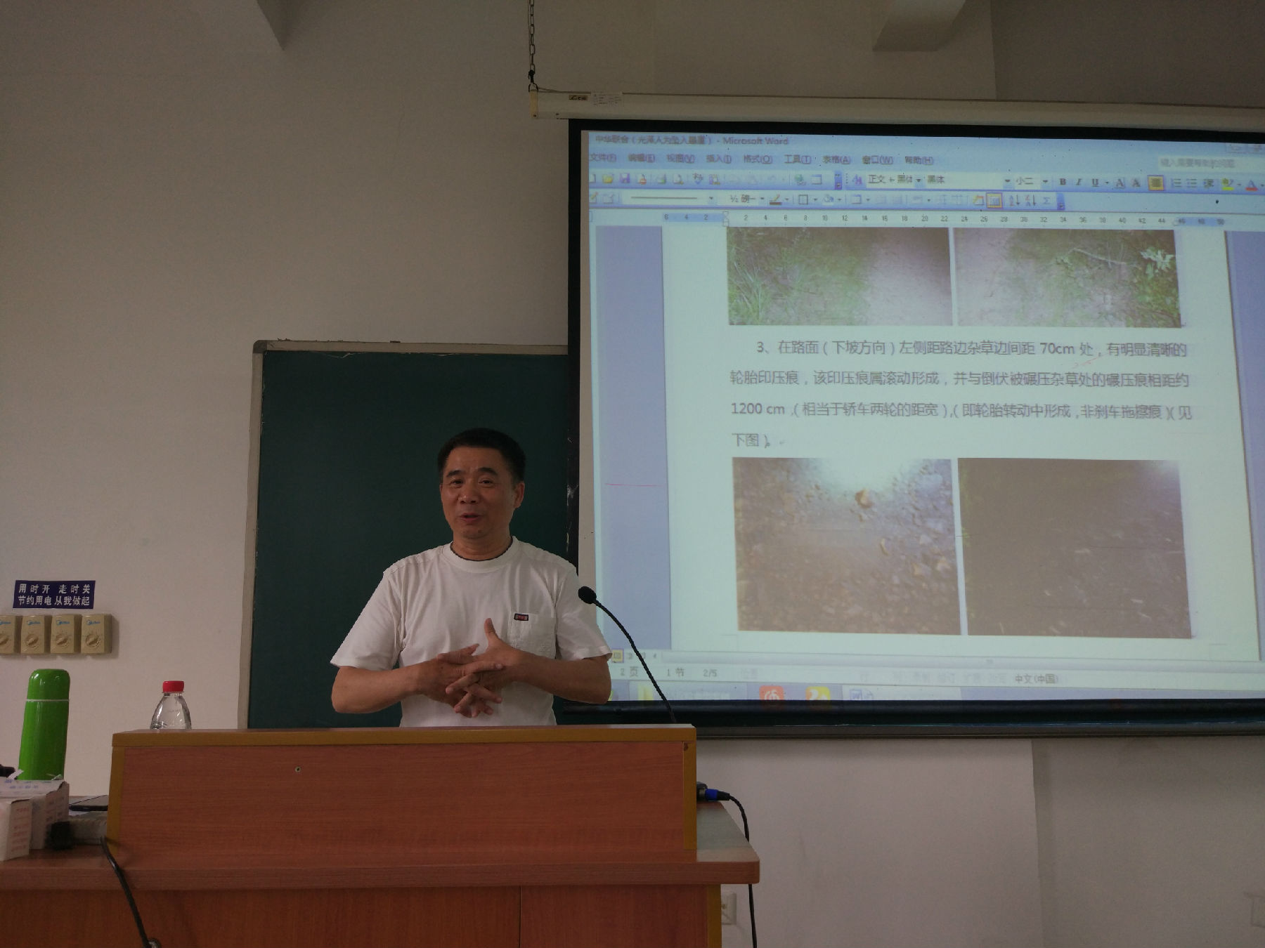 5月11日下午,治安系交通管理教研室邀请原学院司法鉴定中心江涛老师为2013级交管区队学生开设交通事故鉴定技术讲座。