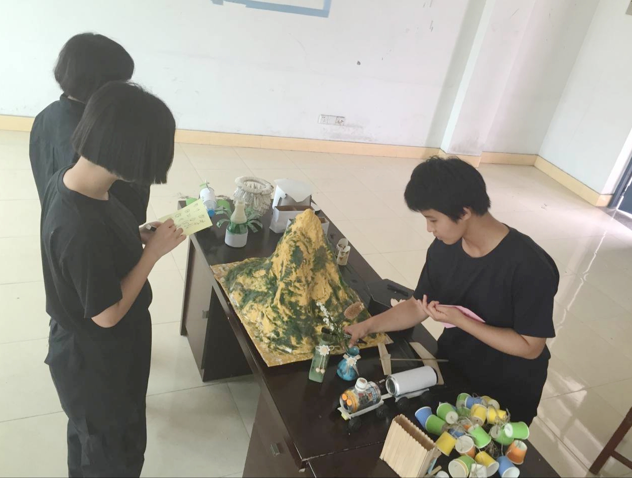 为响应国家可持续发展战略,加强学生节能环保意识,刑执二大队团总支策划举办"变废为宝"创意设计赛。同学们积极参与,共提交了30多件作品。经评委评比,最后163区队陈征等同学创作的 “‘绿色’的山丘”作品赢得一等奖。