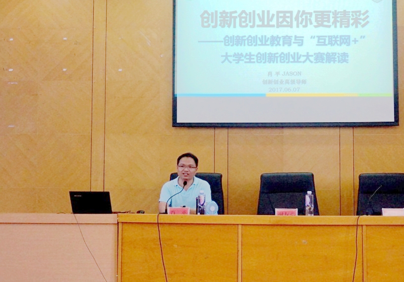 讲座开始前,谢友平处长介绍了省教育厅组织此次活动的目的和意义,强调了创新创业教育工作对高校、大学生的引领作用,希望师生珍惜学习机会,主动与导师进行互动探讨。随后,省教育厅“大创”导师、省人社厅就业创业专委会副主任肖平先生作“创新创业因你更精彩——创新创业教育与“互联网+”大学生创新创业大赛解读”讲座。讲座内容丰富,主题突出,使师生理解创新创业教育内涵,有助于提升beat365创新创业项目指导水平,推进第三届“互联网+”大学生创新创业大赛工作。