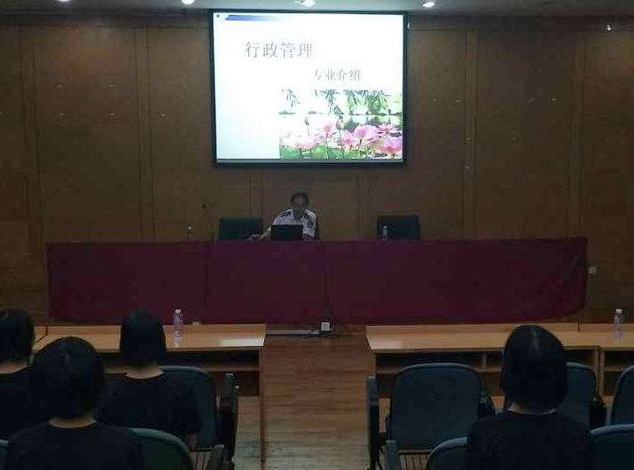 为让新生深入了解所学专业,9月22日,公管系第二学生大队举办了行政管理专业介绍会,介绍会由杨述厚教授主讲。系主任胡滨亭、系党总支副书记吴雄以及大队学管干部、军训班长、辅导员及2017级全体新生参加了会议。
