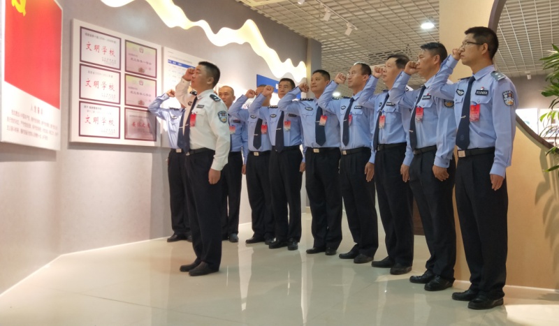 为深入贯彻学习党的十九大精神,营造浓厚学习氛围,进一步把党员干部的思想和行动统一到习近平总书记的重要讲话和党的十九大精神上来, 11月8日上午,培训处党支部组织全体党员参观学院忠诚馆,在参观学习四大篇章陈列后,面向党旗一起重温入党誓词;在支部书记王智强同志领誓下,全体党员庄严宣誓。通过开展本次活动,重温了各个历史时期我省各级公安机关和广大公安民警对党忠诚、奉献牺牲的光辉岁月以及学院为培育党和人民忠诚卫士所谱写的华丽篇章,接受了一次党性淬炼和忠诚洗礼。大家表示要坚定不移以党的十九大精神为指引,不忘初心、牢记使命、忠诚担当、砥砺前行。