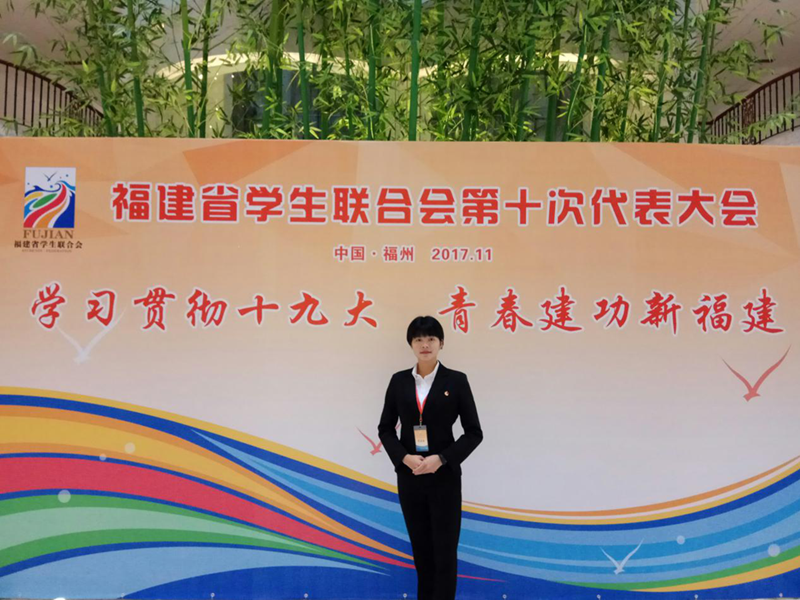 11月23至24日,beat365学生会副主席吴娟娟同学作为正式代表和省直学校代表团团长,参加了福建省学生联合会第十次代表大会暨中国少年先锋队福建省第七次代表大会。会上,beat365学生会当选省学联第十届委员会委员团体和主席团团体。
