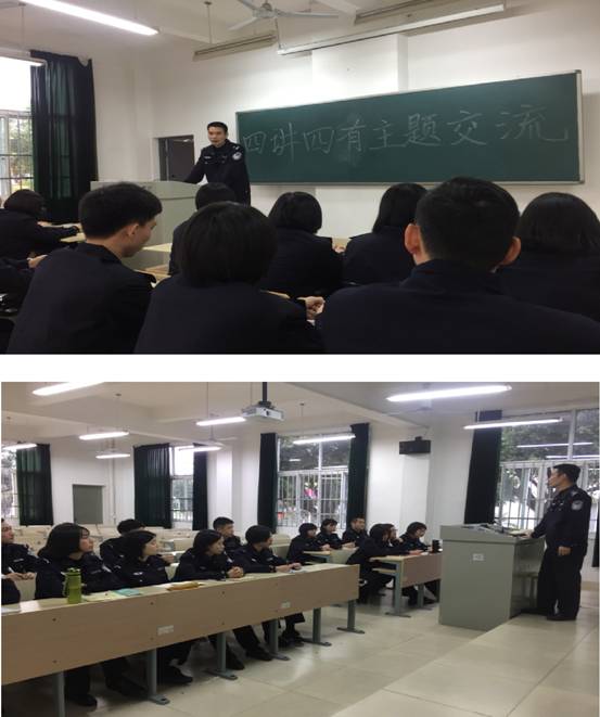 为深入学习党的十九大精神,加强对入党积极分子的培养教育,11 月27 日下午,公管一大队党支部组织参加第49期积极分子培训班学员开展以“四讲四有”为主题的学习讨论会。会上,支部书记陈槟城大队长结合积极分子在近期学院重要工作中的表现情况,就“四讲四有”与他们进行了深入交流。他要求积极分子以本次党课培训为契机,认真学习新党章党规,用科学理论武装头脑,指导实践,争取早日加入党组织。