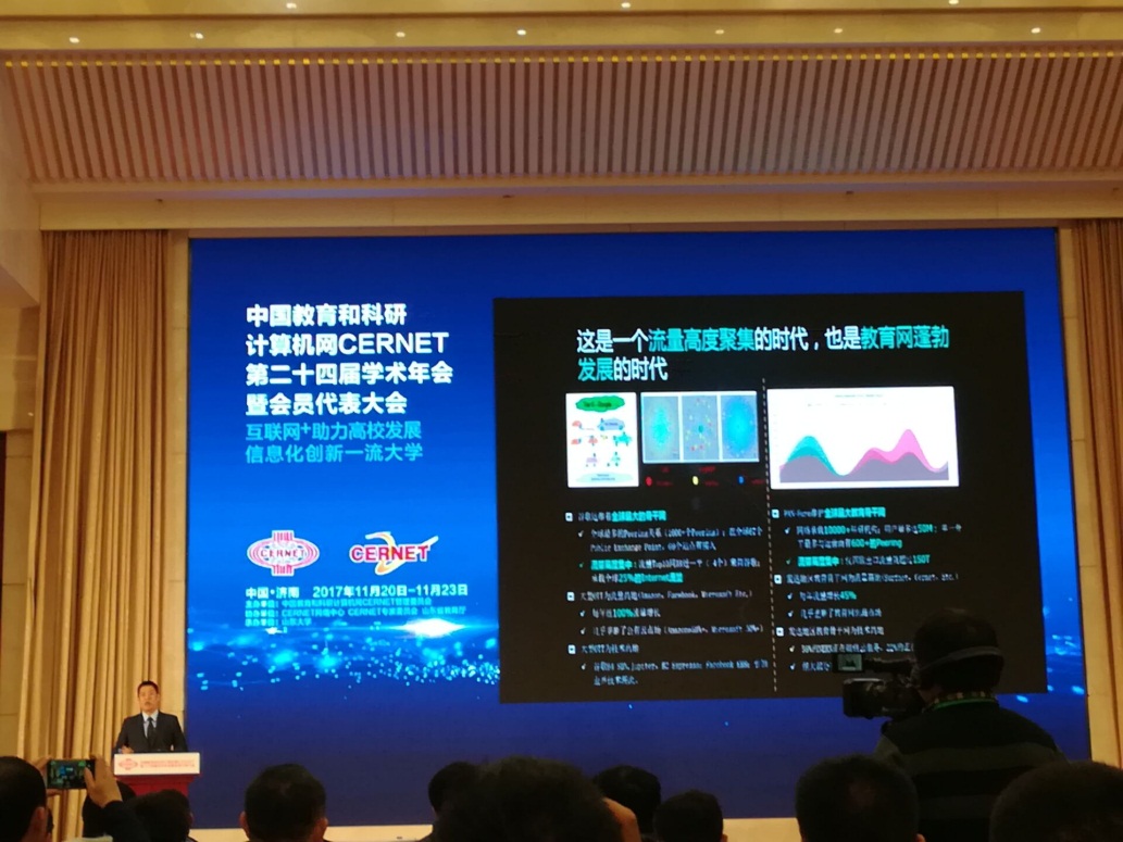 11月20日至23日,beat365现代教育技术中心杨杰老师参加了由教育部科技司、中国教育和科研计算机网CERNET管理委员会主办的第二十四届学术年会暨会员代表大会。本次大会以“互联网+助力高校发展,信息化创新一流大学”为主题,中央网信办、教育部科技司、清华大学等领导和专家分别做了专题报告。与会代表就推进教育大数据、IPv6新一代校园网络技术和应用、教育信息化等问题进行了广泛的学术交流。