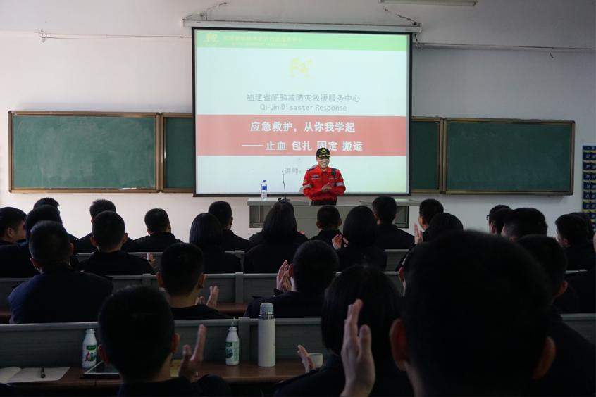 12月24日下午,大队共青团员先锋队邀请福建省麒麟减防灾救援服务中心为急救小组成员开展培训。在李兴伟、姚朝院和梁寿华等老师的指导下,同学们学习了心肺复苏及气道梗阻的相关理论,应急救护中止血、包扎、固定、搬运的相关知识,并观摩了心肺复苏的操作演示,分组分类进行了现场练习。培训取得良好效果,使同学们认识到掌握专业救援技术的重要性,进一步学习提高了应急救援的知识和技能。
