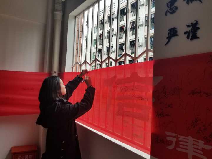 为端正考风考纪,号召同学们树立诚信意识,1月13日中午,法律系开展“学以载道 诚信为本”主题签名活动,百余名同学在横幅上庄重签名,承诺认真备考、诚信考试。活动体现了法律系学生将“诚信”融于学习生活、内化于品质的道德追求。