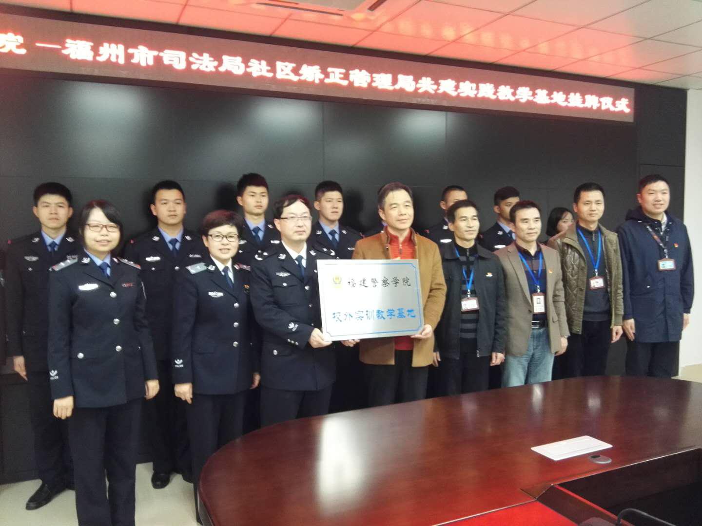 1月19日下午,教务处处长林辉、刑执系副主任欧渊华及师生代表前往福州市司法局参加beat365“福州市司法局社区矫正管理局校外实践教学基地”揭牌仪式。beat365代表与福州市司法局副局长方振荣、社区矫正管理局局长林辉共同为实践教学基地揭牌。仪式后,双方共同参观福州市社区矫正管理局“社区矫正电子监控系统”,并就加强校局合作共建、资源共享等方面进行座谈。该基地的建立使刑执系在学科建设方面迈上了新台阶。