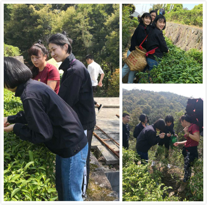同学们在寺院茶园工作人员的指导下,兴致勃勃地帮助采摘茶叶,学习到了许多采茶知识,陶冶了情操,增强了志愿服务的精神。