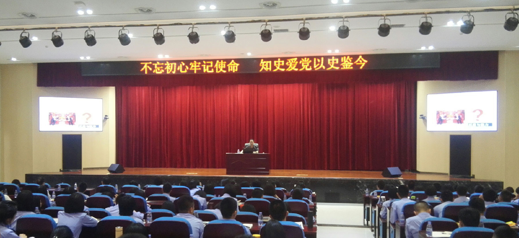 吴教授以党的革命历史为主线,向同学们分析了党的规模从小到大、实力从弱到强,不断加强自身建设,最终带领人民推翻“三座大山”,建立新中国的原因;描述了建国以来我党持如椽巨笔所著的恢弘华章;讲述了我党历代领袖的功过,教育同学们要以辩证思维去对待党的历史,学习党勇于面对失误、勇于改正的精神。
