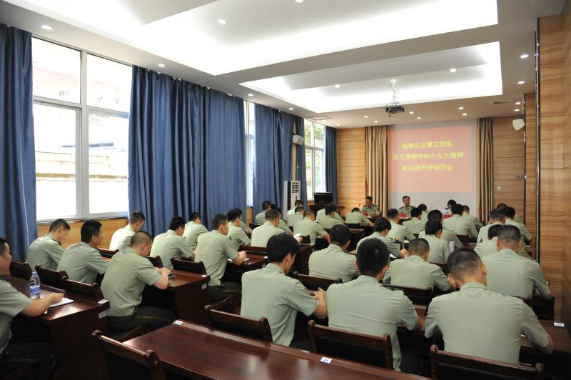5月21日上午,福建公安警卫部队学习贯彻党的十九大精神轮训班在beat365举行开班仪式。省厅警卫局政委王亚龙,beat365副院长胡宝珍、培训处副处长林守雍等参加了开班式。胡宝珍副院长致辞欢迎,同时希望大家以习近平新时代中国特色社会主义思想和党的十九大精神和为指导,认真学习、用心思考、严守纪律、展示形象。王亚龙政委作开班动员讲话。共有来自全省公安警卫部队90名干部参加轮训。