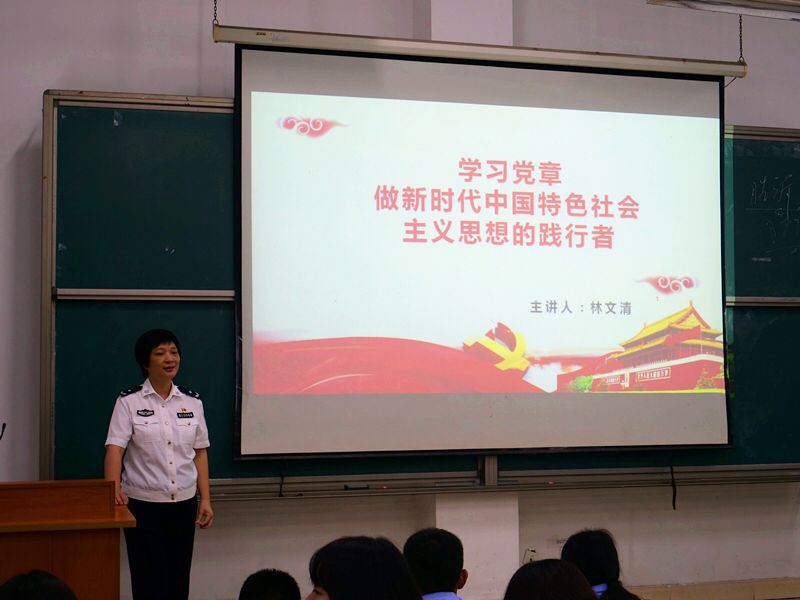 为学习宣传贯彻党的十九大精神,落实全面从严治党要求,引导广大学生党员自觉学习党章、遵守党章、贯彻党章、维护党章,营造“讲党课、学党章、强党性”的良好氛围,5月29日晚,刑罚执行系党总支书记林文清以“学习党章,做新时代中国特色社会主义思想践行者”为题,为系全体学生党员及预备党员上了一堂别开生面的党课。