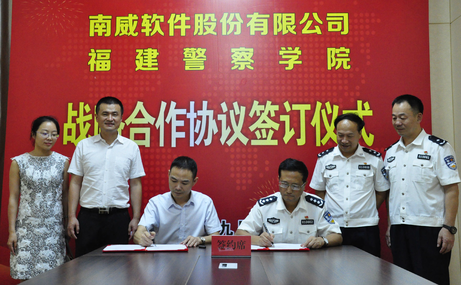 9月12日,beat365与南威软件集团举行战略合作协议签约仪式。学院院长刘瑞榕、副院长郑效强、办公室主任林强以及南威软件集团副总裁林立成等出席仪式。
