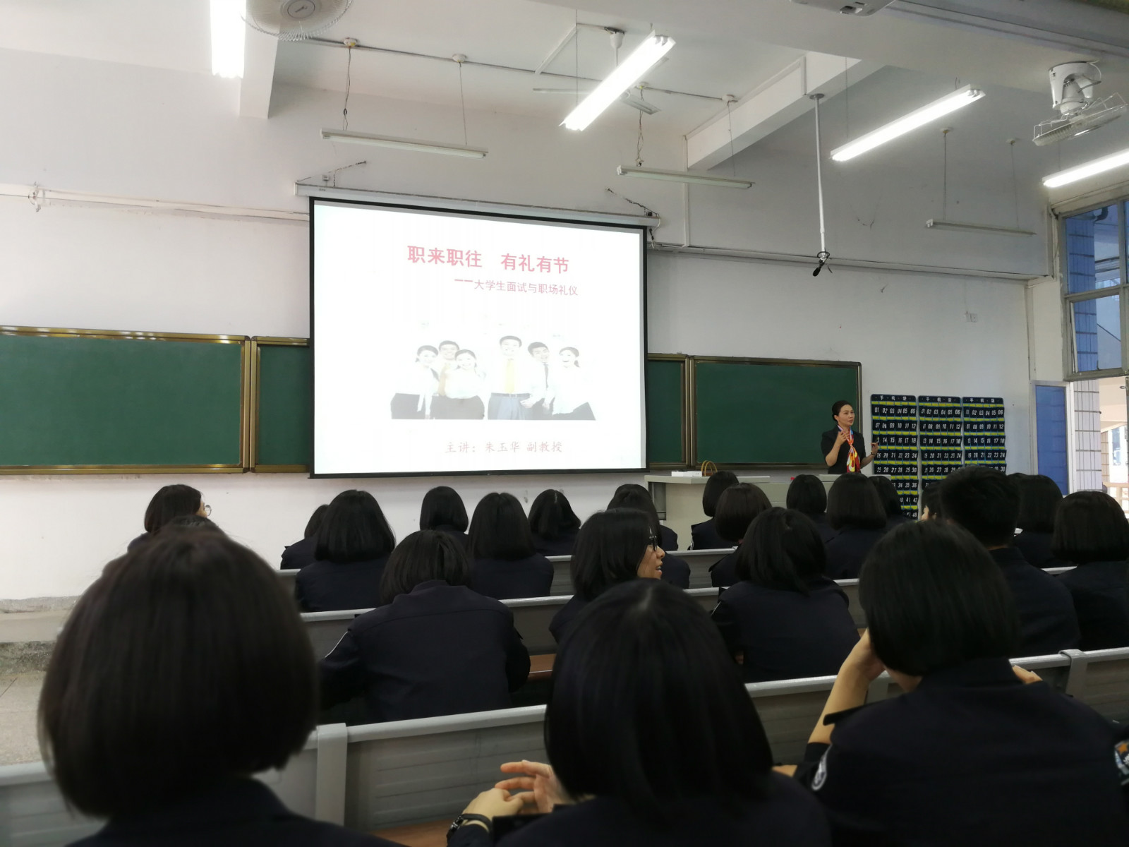 在求职礼仪培训讲座中,教育部高校大学生就业协会核心能力分会特聘礼仪专家、国资委商务人士礼仪专家委员朱玉华副教授,通过互动游戏和现场示范,形象贴切地展示了职场应有的形象和礼仪,使毕业生了解掌握了丰富的礼仪知识,受益匪浅。