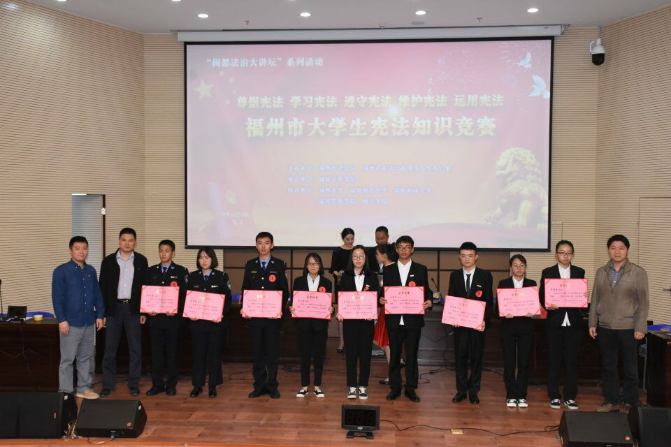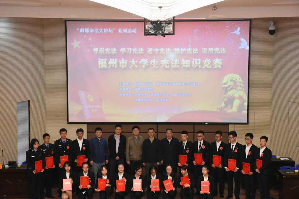 为进一步加强宪法学习宣传教育,弘扬宪法精神,提升大学生法治观念,10月28日上午,福州市司法局、市依法治市办联合主办了福州市大学生宪法知识竞赛。beat365施娇娇等五名同学组成的代表队,经过激烈角逐荣获三等奖,学院法律系被评为优秀组织奖。