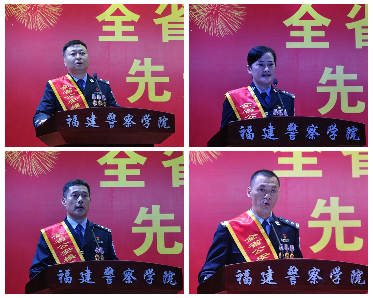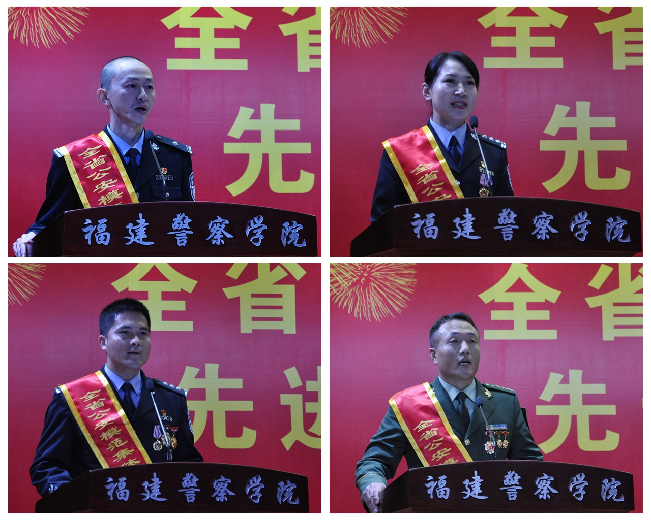 报告会在庄严雄壮的国歌声中拉开序幕。来自厦门市公安局出入境管理支队、漳州市公安局巡特警支队、漳州市公安局强制隔离戒毒所、石狮市公安局凤里派出所、晋江市公安局刑侦大队、上杭市公安局古田派出所、宁德市公安边防支队三都边防派出所、三明市公安局白沙派出所等公安模范集体的8位报告团成员,用朴实无华的语言,讲述了一段段危险时刻显本色、平凡之中见伟大、服务之中献真情的感人事迹,生动诠释了广大公安民警忠诚的政治本色、为民的宗旨理念、公正的价值追求、廉洁的基本操守。杨建树副院长做总结讲话,向报告团成员表示热烈欢迎和崇高敬意,号召师生学习公安模范集体的先进事迹和优良作风,以英雄模范为榜样,切实做到对党忠诚、服务人民、执法公正、纪律严明。